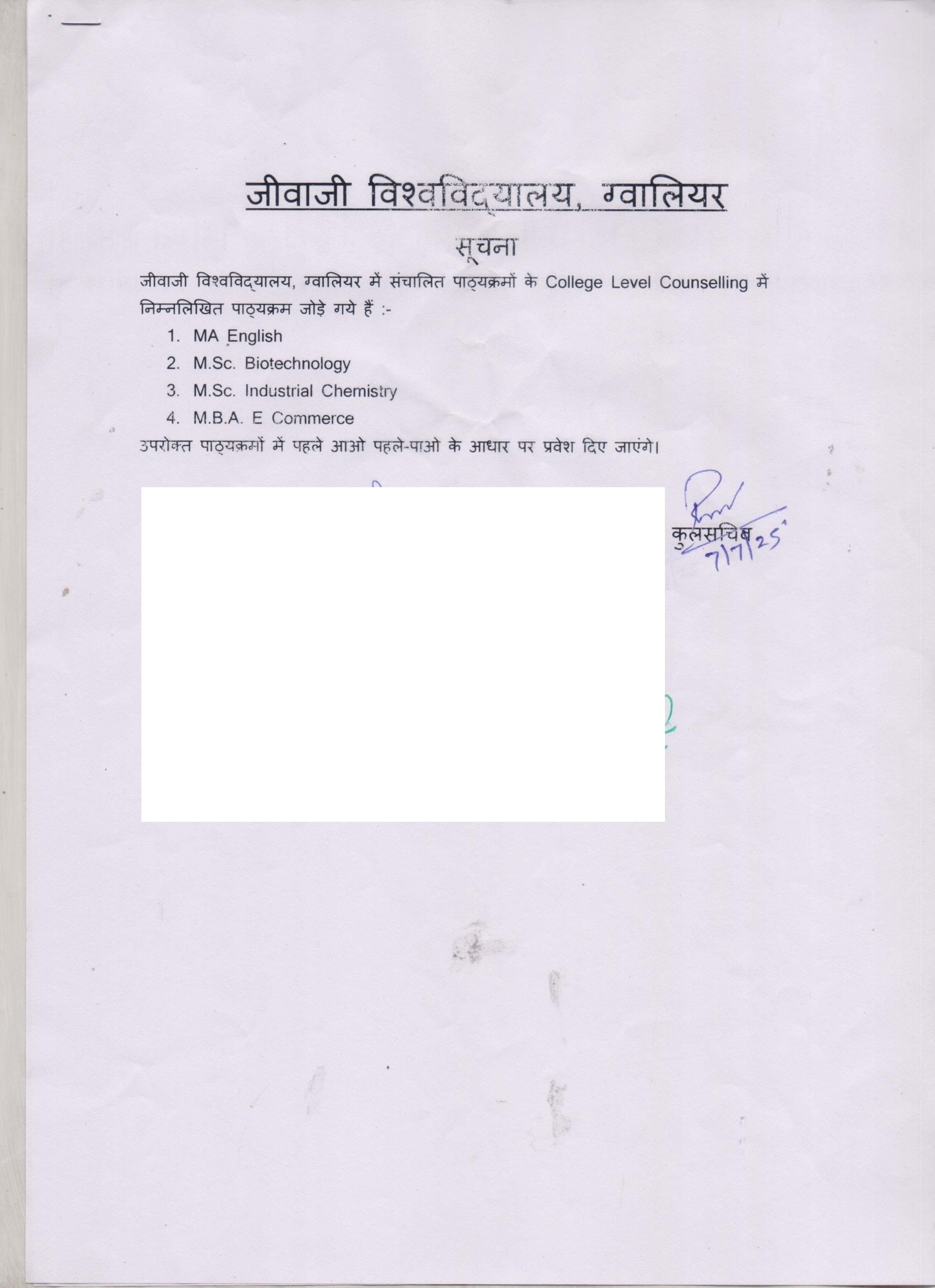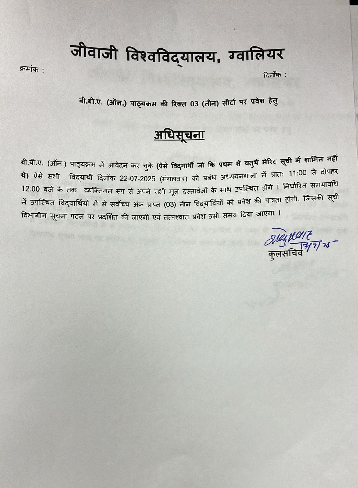 Jiwaji University Gwalior came into existence on May 23, 1964, through M.P. Govt. Ordinance no. 15 of 1963. Late Dr. Sarvapalli Radhakrishnan, the then President of India, laid the foundation stone on 11th December 1964 at a sprawling campus of over 225 acres of land at Naulakha Parade ground.